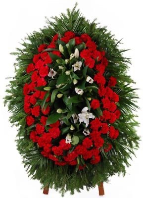 Траурные венки. Классический овальный венок, который несут перед гробом во время похоронной процессии, затем возлагают на могилу. Он символически защищает место последнего упокоения. Венки также часто используются на официальных церемониях у воинских мемориалов.