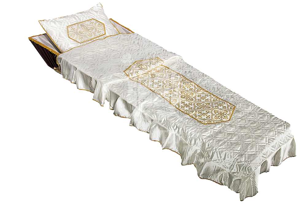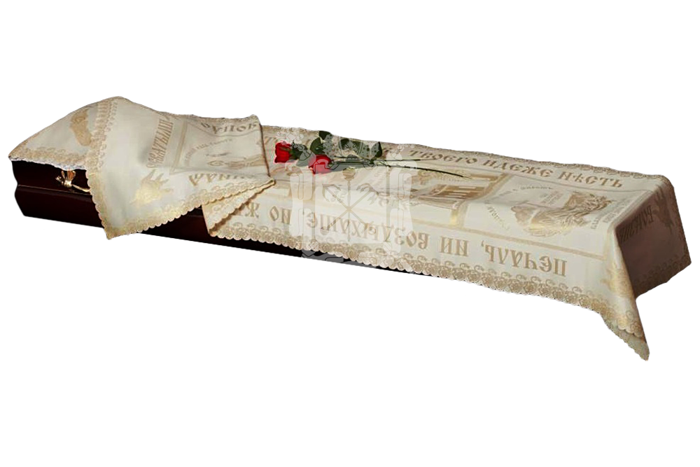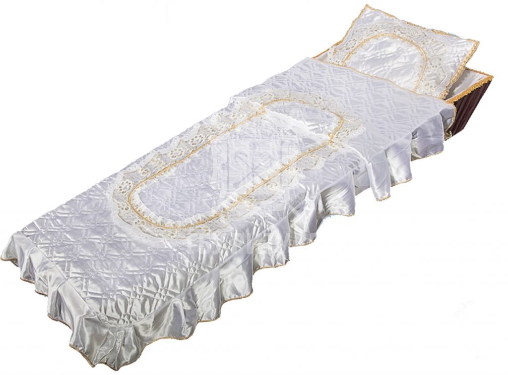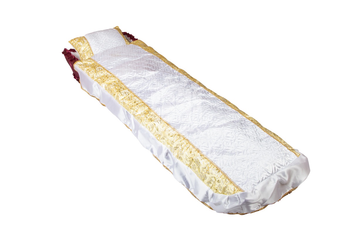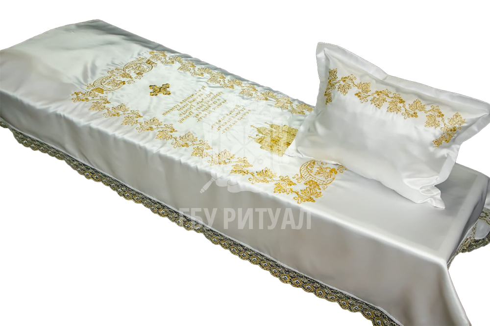 Ритуальный текстиль – это обобщённое название всех погребальных принадлежностей, изготовленных из ткани. В их число входят тканые аксессуары для усопшего и его гроба: постель покойного, ритуальная одежда, подушка для орденов.