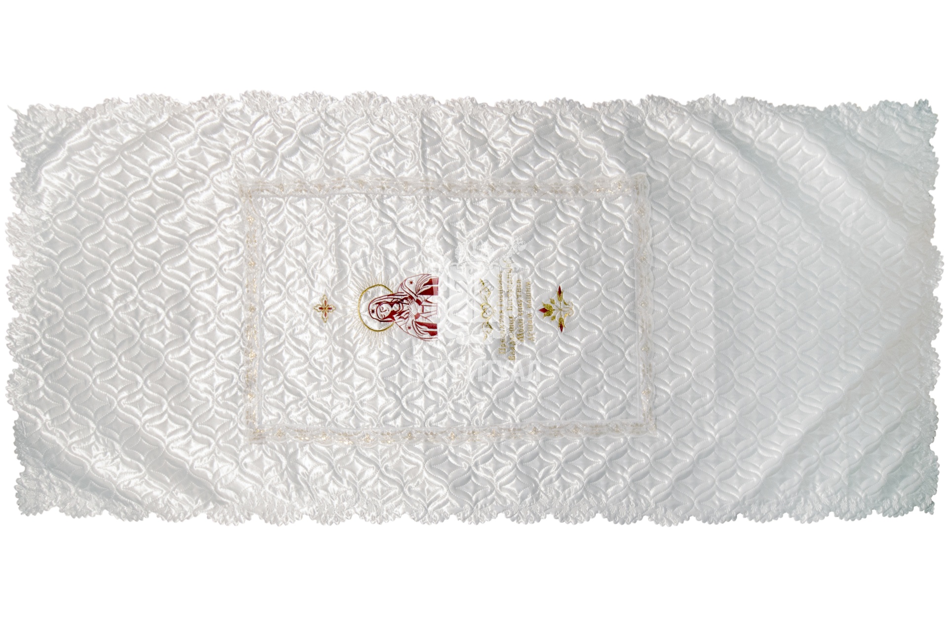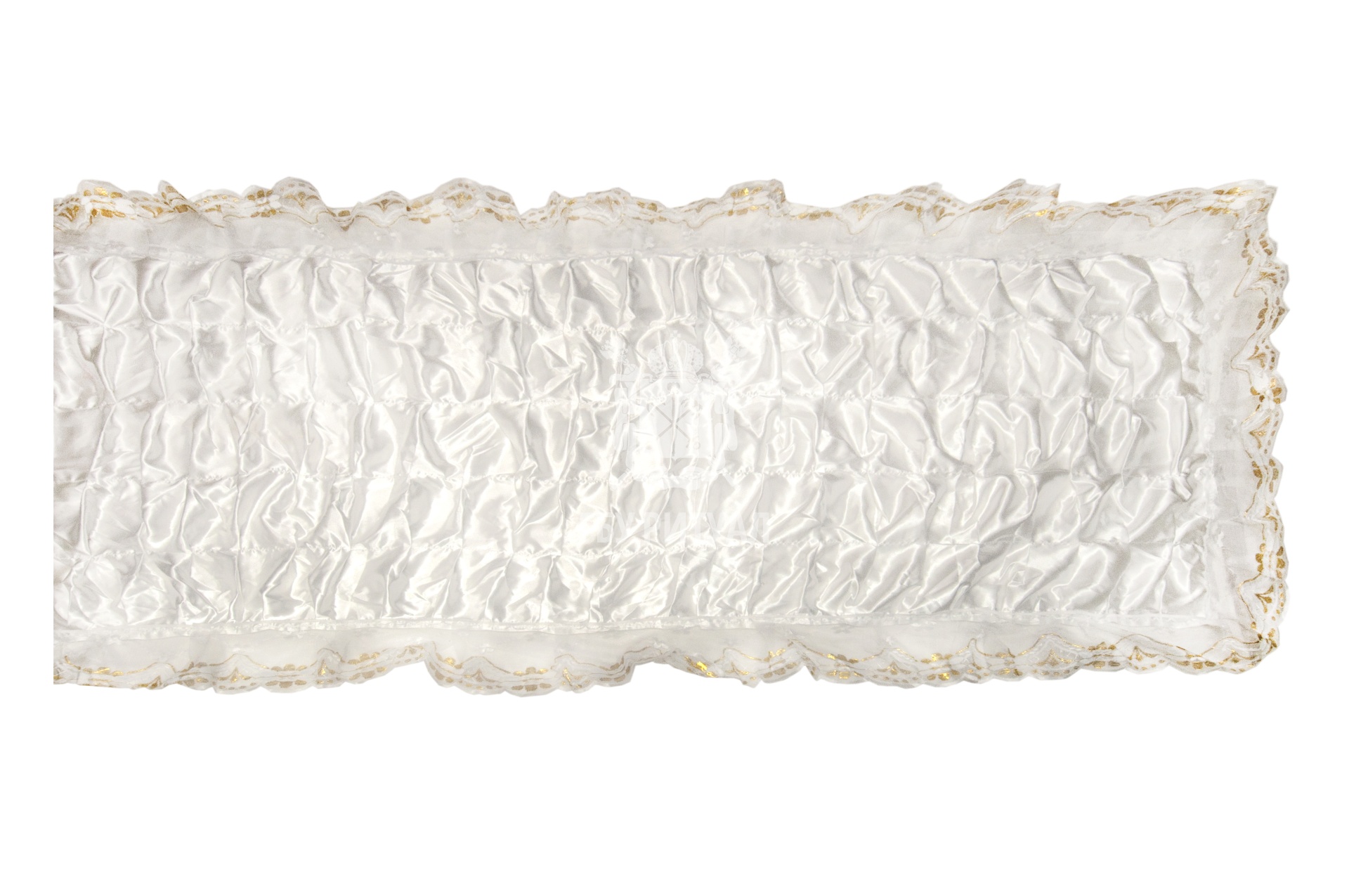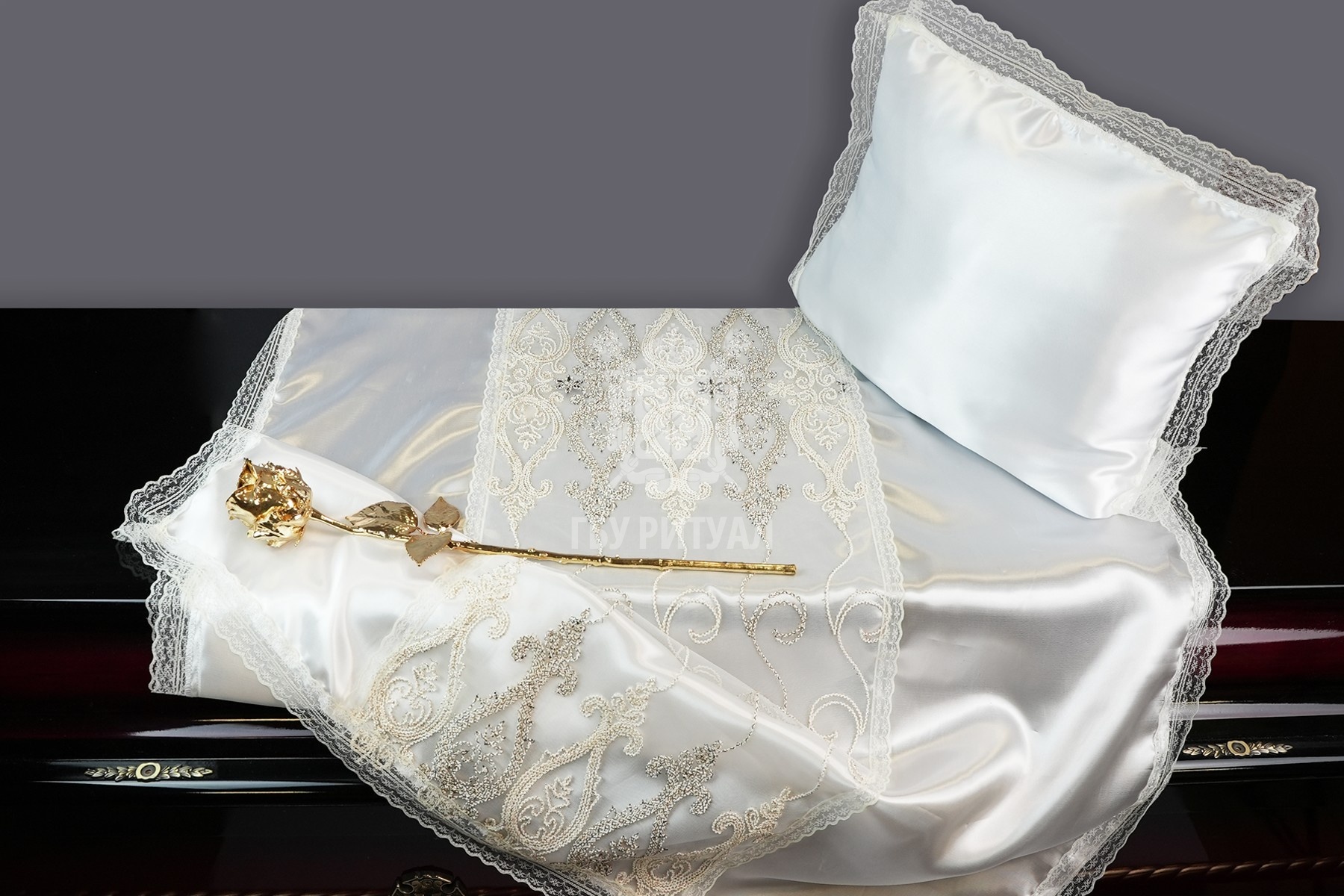 Ритуальный текстиль – это обобщённое название всех погребальных принадлежностей, изготовленных из ткани. В их число входят тканые аксессуары для усопшего и его гроба: постель покойного, ритуальная одежда, подушка для орденов.